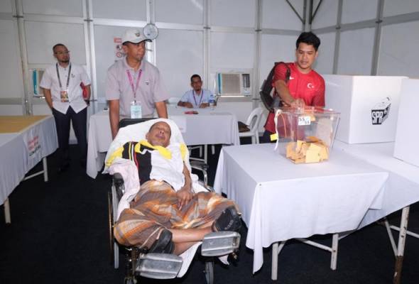“Saya rasa amat penting untuk setiap rakyat keluar mengundi. Saya sendiri keluar mengundi dalam keadaan begini.