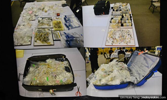 menteri Najib Razak dan keluarganya untuk memeriksa barangan yang disita